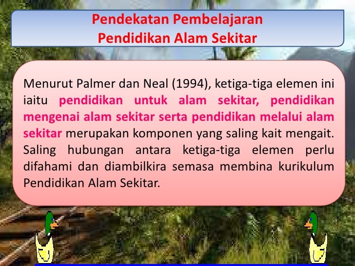 - 9. Tiga elemen pendekatan Pendidikan Alam Sekitar Model Palmer dan Neal (1994)